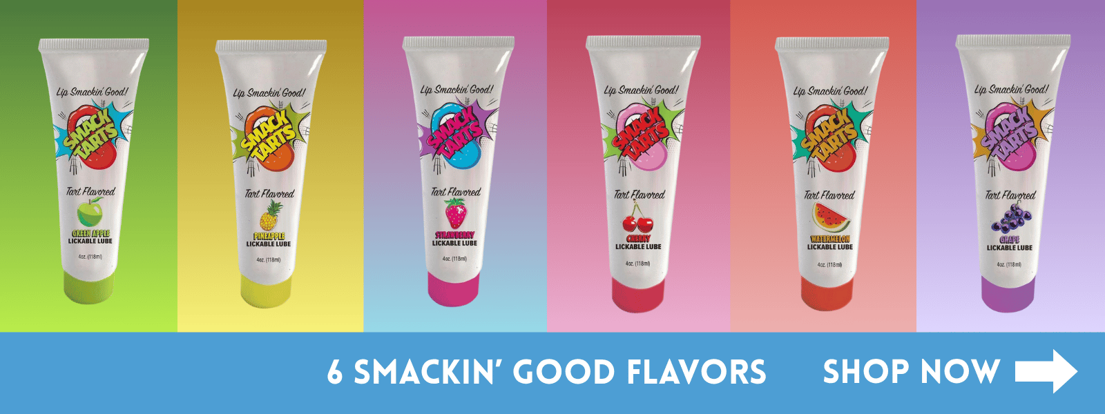 Ready to add some serious flavor to your love life? SMACK TARTS brings you an edible lubricant gel that's changing the game for couples everywhere. We get it – intimacy should be fun, flavorful, and totally stress-free. That's exactly why we created our line of water-based flavored oral gels that taste as good as they feel. Each edible lubricant gel is crafted to make your most intimate moments sweeter (literally). Our smooth, lickable formula glides on effortlessly and tastes incredible, turning ordinary encounters into flavor-packed adventures you'll both crave. What makes SMACK TARTS different? We believe pleasure shouldn't come with compromise. Our flavored oral gel is water-based, body-safe, and designed specifically for those who love taste with their play. No sticky residue, no weird aftertaste – just pure, delicious fun in every squeeze. From Cherry to Watermelon, Pineapple to Grape, we've got six mouthwatering flavors that'll have you coming back for more. Toss one in your nightstand, pack one for a romantic getaway, or stock up on your favorites – with SMACK TARTS edible lubricant gel, every flavor is a new way to connect.